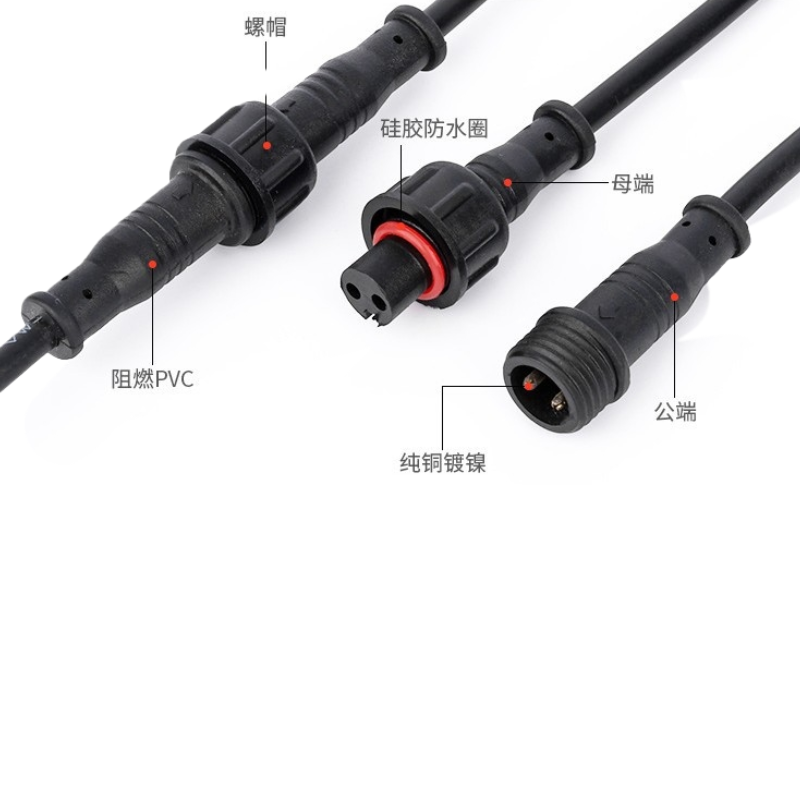 产品名称:M12-2芯 0.3平方公母LED植物生长灯防水线
