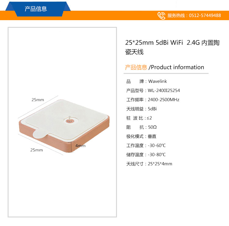 25*25mm 5dBi WiFi 2.4G内置陶瓷天线天线